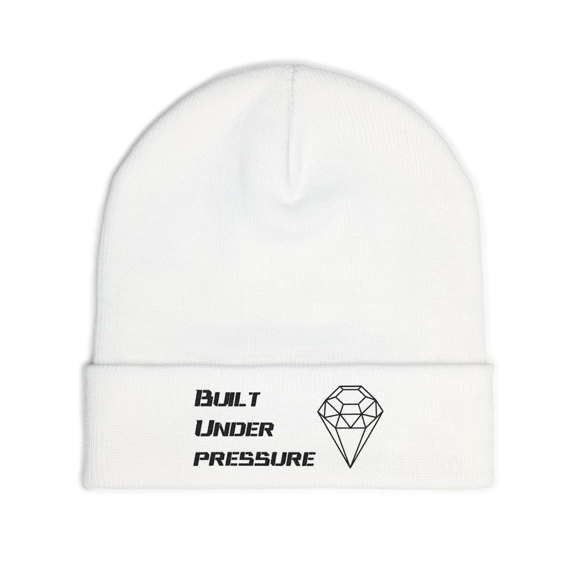 "Built Under Pressure" Black on White Knit Beanie